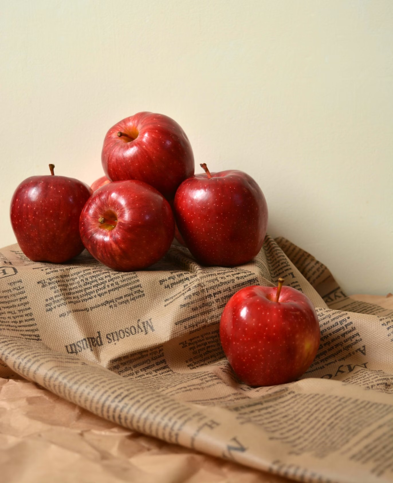 りんごの保存方法は冷蔵庫での保存が最もおすすめ。また、りんごはエチレンガスを発するため、1個ずつキッチンペーパーか新聞紙で包み、袋に入れましょう。
